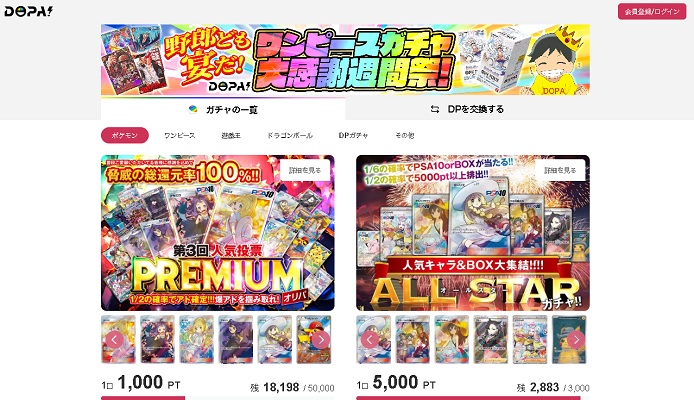 自分が引きたいと思う、ラインナップが多いオンラインオリパでガチャを引くのも理想的な店選びの一つです。