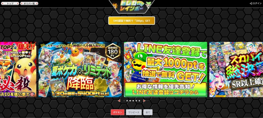 | 無料ポイント | LINEお友達登録で 最大10,000ポイント | 毎日1回 無料オリパ | お友達紹介で 300ポイント |