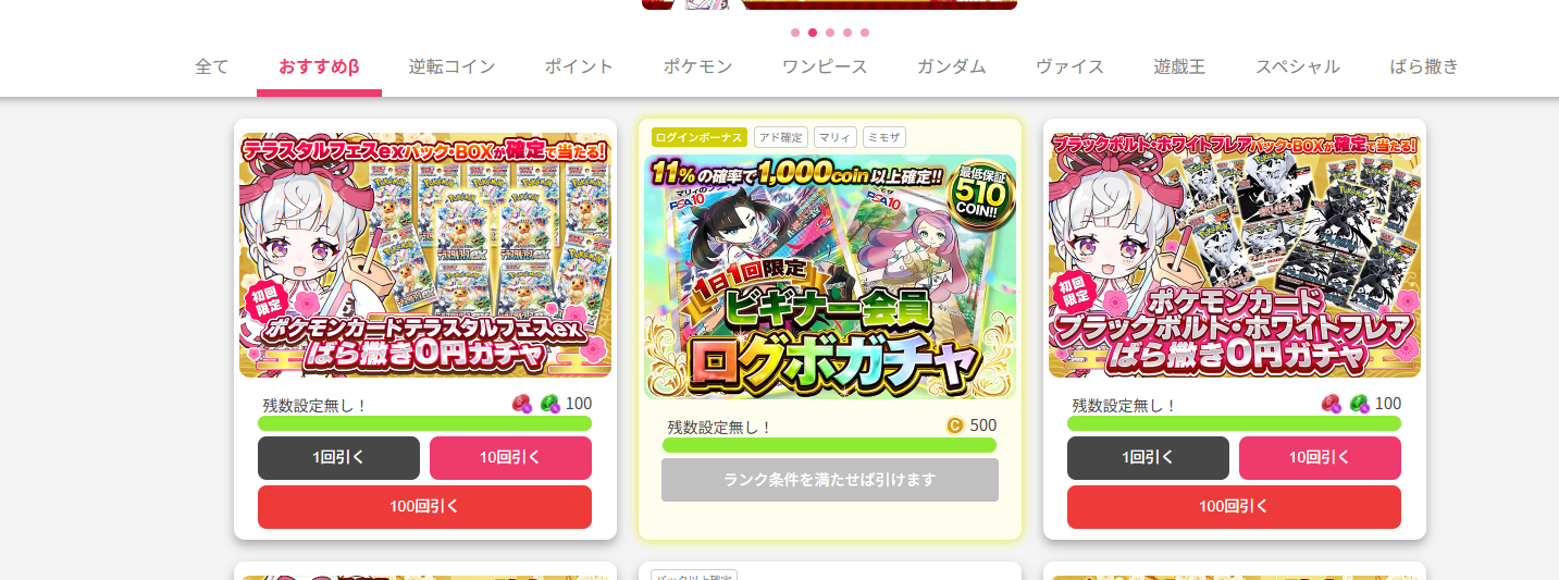 ショップによってはログインボーナスや友達認証などでオリパを無料で引くことができます。
