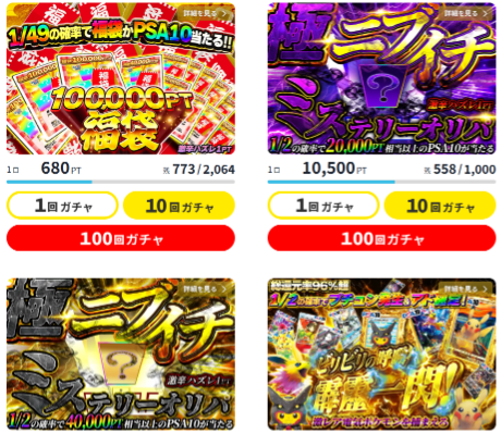 還元率が高いオリパは損しづらいオリパと言えるため、お得にオリパを楽しめるサイトと言えます。