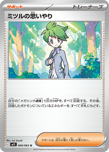 自分の「メガシンカex」1匹のHPをすべて回復する効果が非常に強力で、デッキに欠かせないカードになりそうです。