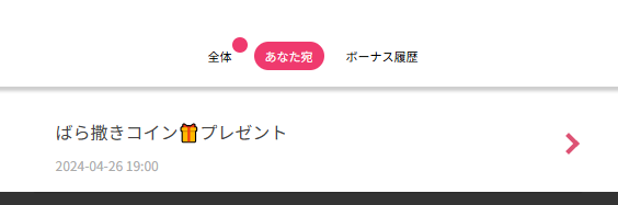 ばら撒きコインプレゼントのメッセージが届いているため、クリックして開きます。