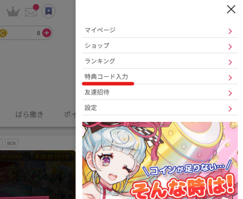 以下の手順でばら撒きコインを入手できるため、しっかりばら撒きコインを入手するようにしましょう。