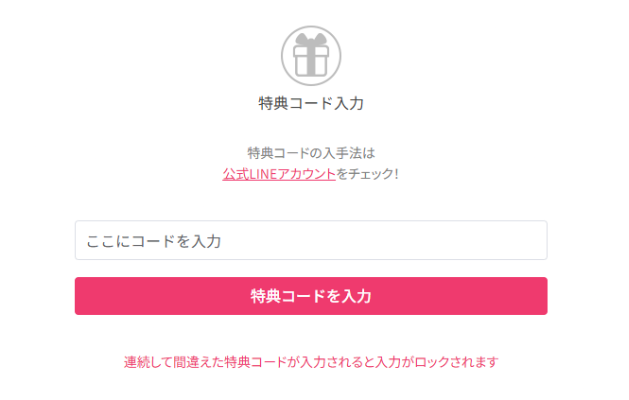特典コード入力画面でクーポンコードを入力する