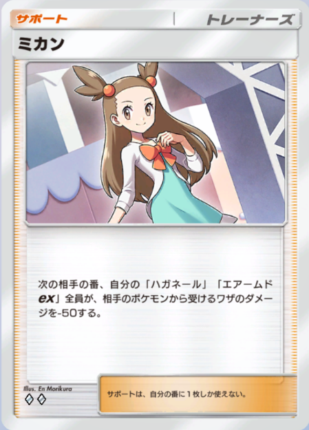 そこにミカンや鋼鉄のまえかけを組み合わせることで、さらに軽減を加えてエアームドexを長くバトル場に留めることが可能です。