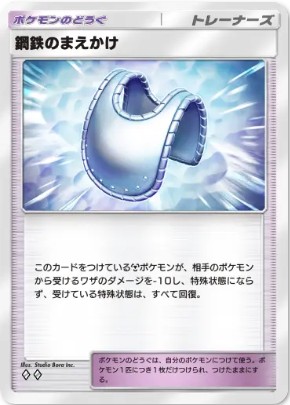 鋼鉄のまえかけは鋼タイプ専用のダメージ軽減カードです。