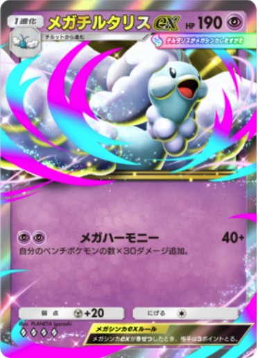 メガチルタリスexはHPが高いので倒されづらく、火力も高いため、エビワラーexを1撃で倒すことができます。