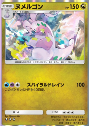 ヌメラから進化するヌメイルは、特性もなくなり技も60ダメージ技と、さほど特徴のない進化先です。
