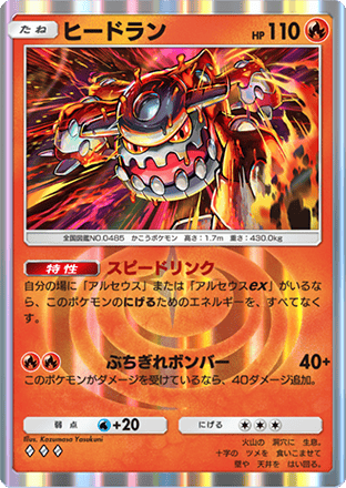 アルセウスがベンチにいることで逃げるエネルギーを0にできるヒードランを入れることで、早いデッキにも対応できるようになっています。