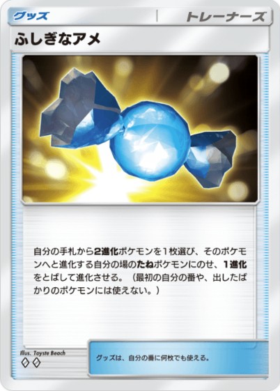 しかし最近では、山札を特性で引くことができるニンフィアexや、ヒトカゲから直接進化させることのできるふしぎなアメの登場により、以前より格段に進化しやすくなっています。