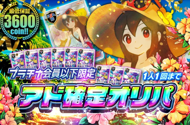 - 3,000coinのプラチナ会員以下限定で3,600coin以上確定