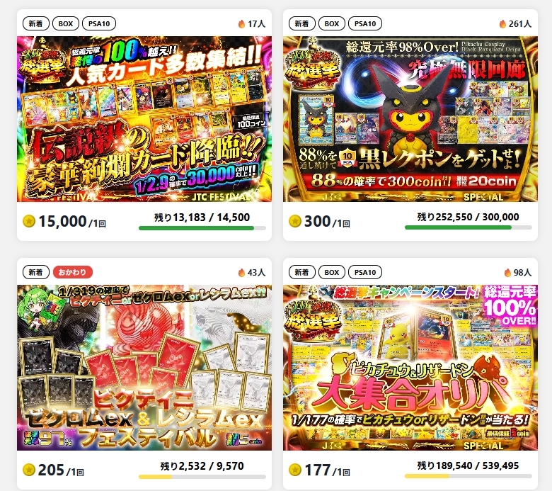日本トレカセンターはポケカからワンピース、遊戯王など様々なオリパを展開中!
